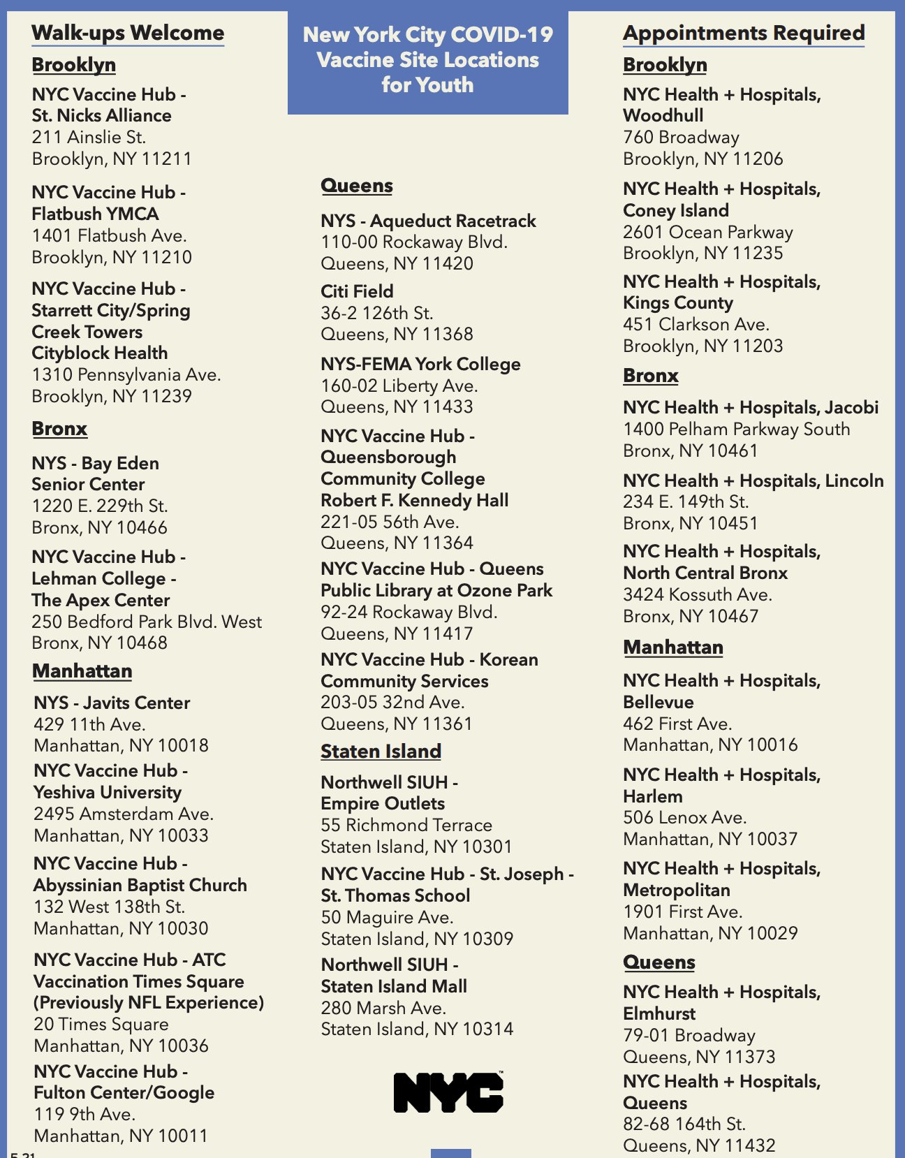Mark D Levine On Twitter 30 Major Vax Sites In Nyc Are Offering Pfizer For Aged 12 Many Appts For As Soon As Today See Https T Co 5cfvdbe42a Most Of The Sites Also Accept